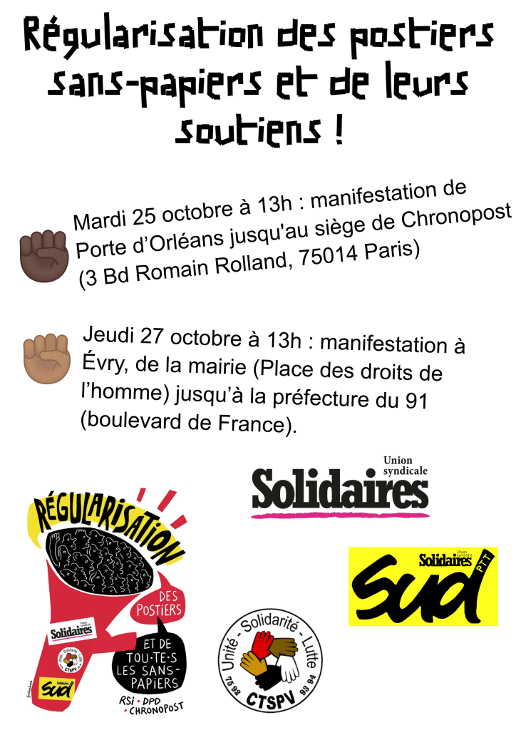 27 octobre 2022 – Manifestation des postiers sans-papiers à Évry Publié 26 octobre 202230 décembre 2023 Par solidaires91 dans Évènements, Non classé Partager : Partager sur X(ouvre dans une nouvelle fenêtre) X Partager sur Facebook(ouvre dans une nouvelle fenêtre) Facebook J’aime chargement… Similaire Publié par solidaires91 Voir tous les articles par solidaires91