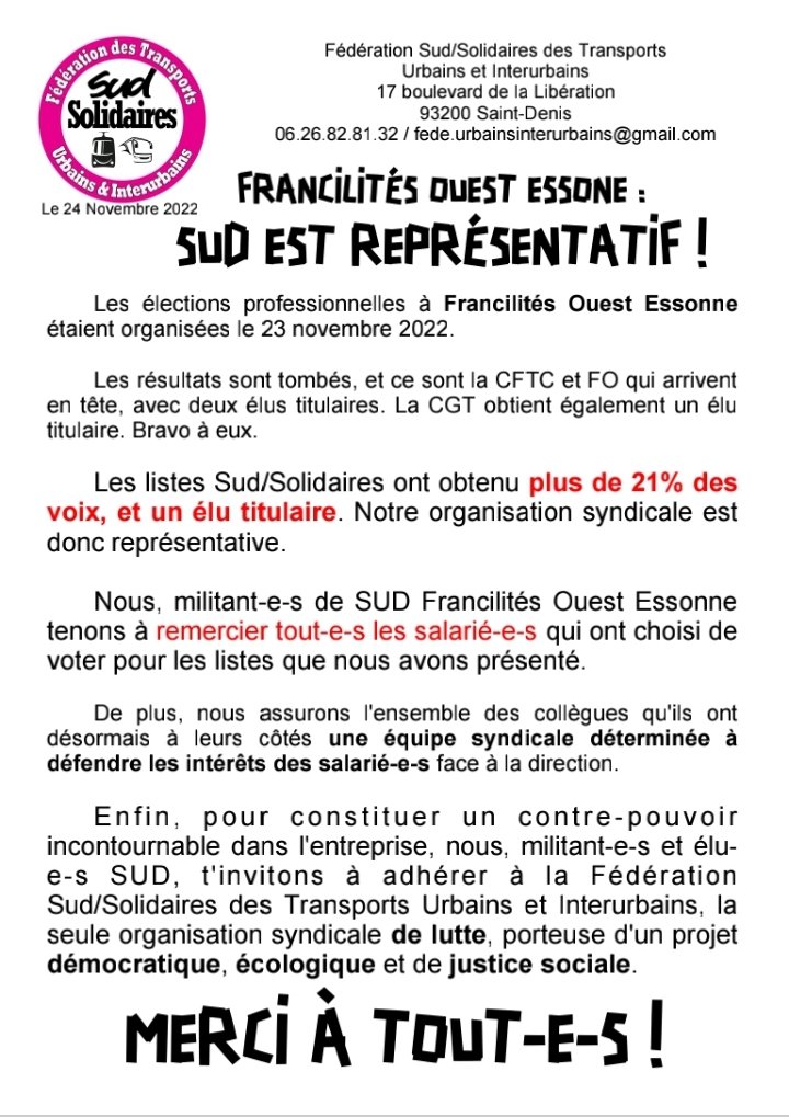 Francilité Ouest Essonne : SUD est représentatif ! Publié 24 novembre 202228 décembre 2023 Par solidaires91 dans Document Partager : Partager sur X(ouvre dans une nouvelle fenêtre) X Partager sur Facebook(ouvre dans une nouvelle fenêtre) Facebook J’aime chargement… Similaire Publié par solidaires91 Voir tous les articles par solidaires91