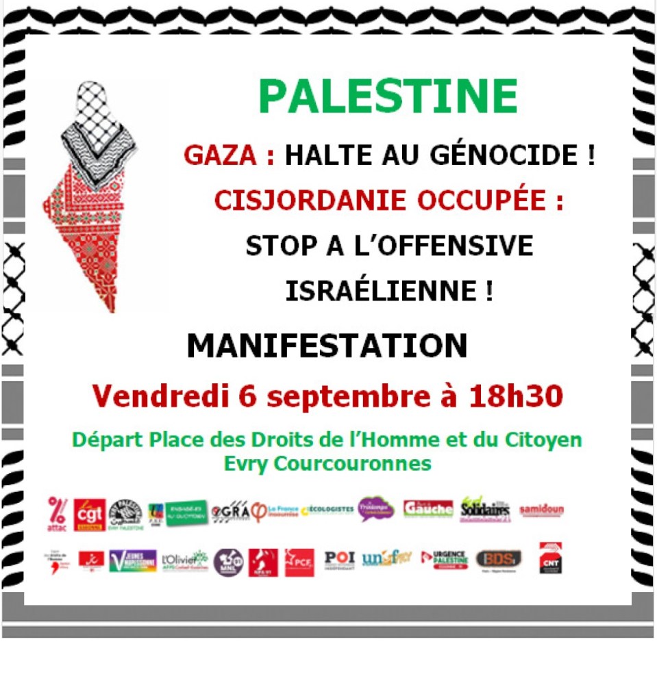 Manifestation au départ de la place des droits de l’homme, Évry, à 18h30.