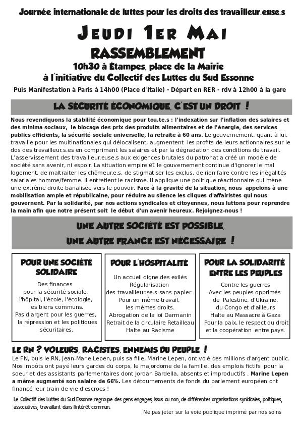 1er mai 2025 (Étampes, Massy, Paris..) Journée internationale des droits des travailleurs et travailleuses