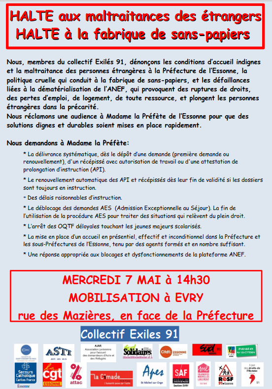 et la maltraitance des personnes étrangères à la Préfecture de l’Essonne, la