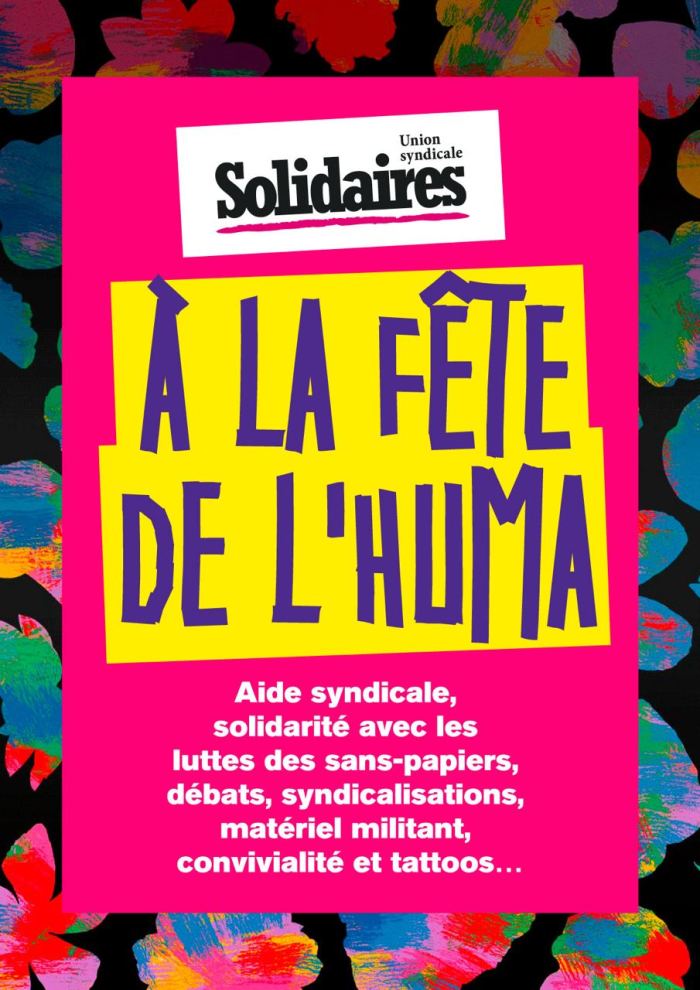 Du vendredi 12 au dimanche 14 septembre, retrouvez le stand de l’Union Syndicale Solidaires à la fête de l’humanité pour des débats, des concerts et des tattoos militants !