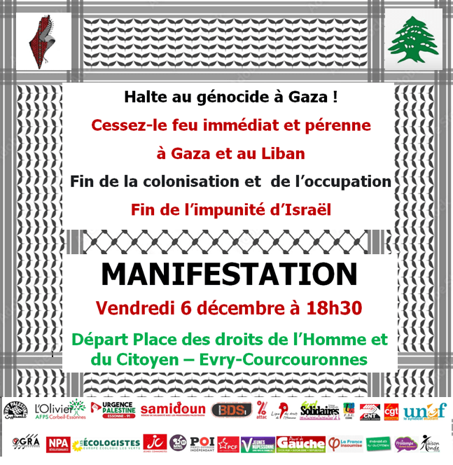 6 décembre 2024 – Manifestation à Évry contre le génocide à Gaza