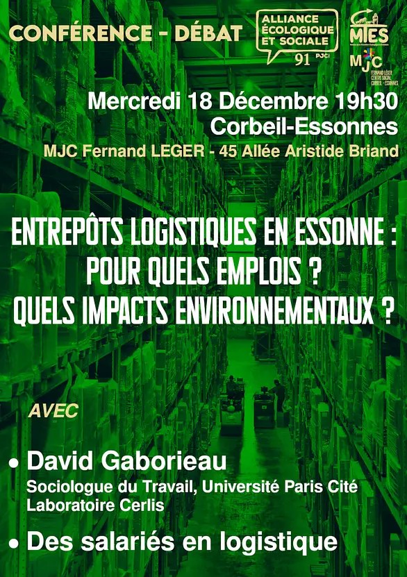 18 décembre 2024 – Conférence/débat- Entrepôts logistiques en Essonne : pour quels emplois ? Quels impacts environnementaux ?