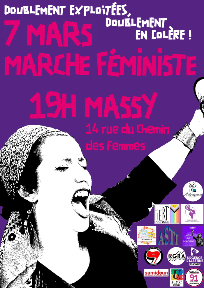 Manifestation vendredi 7 mars, départ 19h du 14 rue du chemin des femmes, Massy (maison des syndicats).