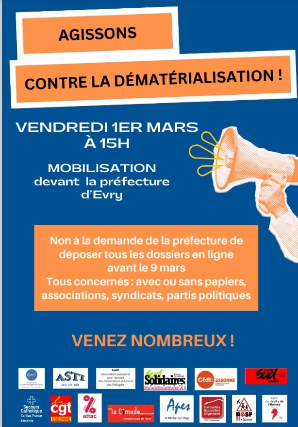 Rendez vous le dimanche 15 juin à 15h à la gare de Palaiseau-Villebon pour une manifestation unitaire jusqu’au CRA de Palaiseau.